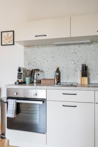 تتوفر (1) غرفة نوم في الشقة، بالإضافة إلى مطبخ فيه ثلاجة وفرن وماكينة قهوة. تتوفر مناشف وبياضات أسرّة في الشقة.