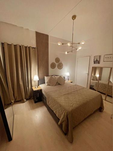 تتوفر (1) غرفة نوم في الشقة، وتلفزيون بشاشة مسطحة، ومطبخ مجهز بالكامل ويوفر للضيوف ثلاجة وفرناً وغسالة ملابس وميكروويف وموقداً مسطحاً.