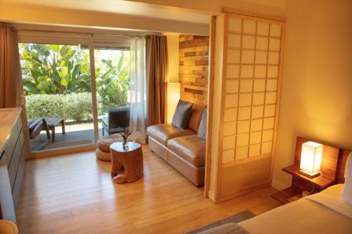 تحتوي جميع الوحدات على مطبخ صغير مجهز بالكامل مع طاولة لتناول الطعام، بالإضافة إلى تلفزيون بشاشة مسطحة مع قنوات الكابل، وحمّام خاص مع دش ولوازم استحمام مجاناً ومجفف للشعر. تحتوي بعض الوحدات على شرفة و / أو فناء مع إطلالات على البحر أو الحديقة.