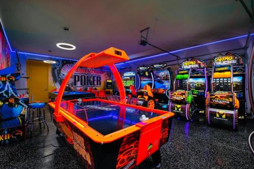 تتوفر (5) غرفة نوم في بيت العطلات هذا، وغرفة معيشة، ومطبخ مجهز بالكامل فيه ثلاجة وغلاية، و (4) حمّام مع حوض استحمام ساخن ولوازم استحمام مجاناً، وجهاز تكييف. يوجد تلفزيون.