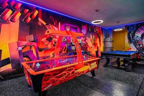 تتوفر (5) غرفة نوم في بيت العطلات هذا، وغرفة معيشة، ومطبخ مجهز بالكامل فيه ثلاجة وغلاية، و (4) حمّام مع حوض استحمام ساخن ولوازم استحمام مجاناً، وجهاز تكييف. يوجد تلفزيون.
