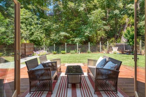 تتوفر (3) غرفة نوم في بيت العطلات، و (2) حمّام، وبياضات أسرّة، ومناشف، وتلفزيون، ومطبخ مجهز بالكامل، وفناء مع إطلالات على الحديقة.