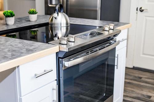 تتوفر (3) غرفة نوم في هذه الشقة، وتلفزيون بشاشة مسطحة، ومطبخ فيه ثلاجة وغسالة صحون، وجهاز تكييف.