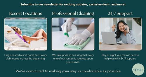 يقع مكان إقامة "Upstay - 20 Guest Mansion w THE BEST Amenities" في كيسيمي على بُعد 16 كم من مملكة حيوانات ديزني و17 كم من منتزه بليزارد بيتش المائي في ديزني، ويوفر واي فاي مجاني وجهاز تكييف ومركزاً للياقة البدنية وسبا ومركز عافية. يوفر بيت العطلات هذا أيضاً مسبحاً خاصاً.