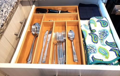 • يتم تعقيم جميع الأطباق وأدوات تناول الطعام والأكواب وأدوات المائدة الأخرى