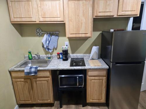 تتوفر (1) غرفة نوم في هذه الشقة، وتلفزيون بشاشة مسطحة، ومطبخ فيه ثلاجة، وجهاز تكييف.