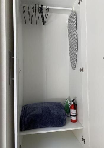 تتوفر (1) غرفة نوم في الشقة، ومطبخ صغير فيه ثلاجة وغسالة صحون، و (1) حمّام مع دش ولوازم استحمام مجاناً. تتوفر مناشف وبياضات أسرّة في الشقة.