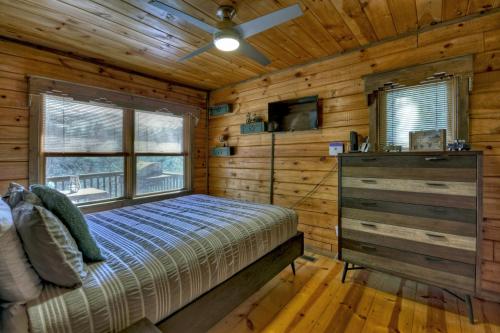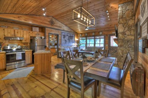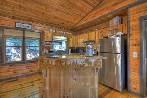 يحتوي مكان إقامة "Traveller - Cabin with Hot Tub and Mountain Views - Hot Tub, Mountain Views, Ping Pong Table, Modern Amenities - Cherry Log, GA" على 2 غرفة نوم مع جهاز تكييف ومطبخ مجهز بالكامل فيه ثلاجة.