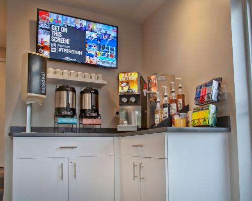 A 43-inch cable TV, refrigerator, and spa-quality bath amenities are provided in each vintage-style room at the Thunderbird. Free MoonPie pastries and sodas are available in each guest room.