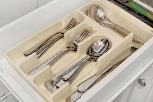تتوفر (2) غرفة نوم في بيت العطلات، وغرفة معيشة، ومطبخ مجهز بالكامل فيه ثلاجة، و (2) حمّام مع حوض استحمام أو دش ولوازم استحمام مجاناً، وجهاز تكييف. تتوفر مناشف وبياضات أسرّة في بيت العطلات.