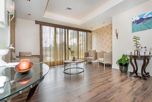يمكن للضيوف الاسترخاء في منطقة العافية بما في ذلك حوض الاستحمام الساخن، أو في الحديقة التي تحتوي على ملعب للأطفال.