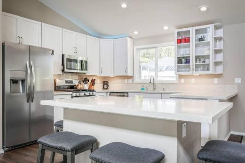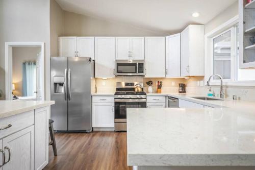 تتوفر (2) غرفة نوم في بيت العطلات هذا، وغرفة معيشة، ومطبخ مجهز بالكامل فيه ثلاجة وماكينة قهوة، و (2) حمّام مع دش ومجفف للشعر. تتوفر مناشف وبياضات أسرّة في بيت العطلات.