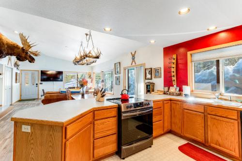 تتوفر (3) غرفة نوم في بيت العطلات، و (2) حمّام، وبياضات أسرّة، ومناشف، وتلفزيون مع قنوات الكابل، ومنطقة لتناول الطعام، ومطبخ مجهز بالكامل، وفناء مع إطلالات على الجبل.