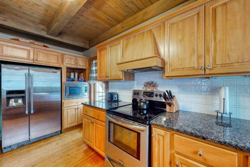 تتوفر (6) غرفة نوم في بيت العطلات، و (4) حمّام، وبياضات أسرّة، ومناشف، وتلفزيون، ومنطقة لتناول الطعام، ومطبخ مجهز بالكامل، وفناء مع إطلالات على الجبل.