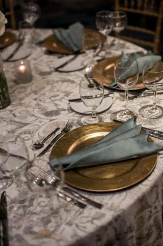 • يتم تعقيم جميع الأطباق وأدوات تناول الطعام والأكواب وأدوات المائدة الأخرى