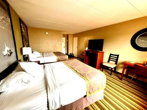 Each guest room at the Super 8 Frederick features cable TV, a microwave, and a refrigerator. They are decorated in light colors and wood furnishings and also have in-room coffee-making facilities.