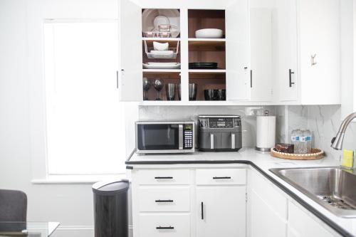 تتوفر (1) غرفة نوم في هذه الشقة، وغرفة معيشة، ومطبخ مجهز بالكامل فيه ثلاجة وماكينة قهوة، و (1) حمّام مع حوض استحمام ساخن ومجفف للشعر، وجهاز تكييف. تتوفر مناشف وبياضات أسرّة في الشقة.