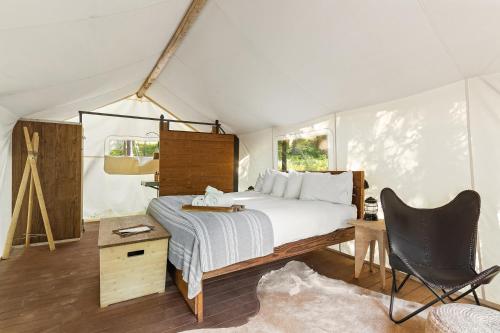 Without electricity, each safari-inspired tent includes a king-size bed, luxury linens. Select tents feature a seating area and a private bathroom.