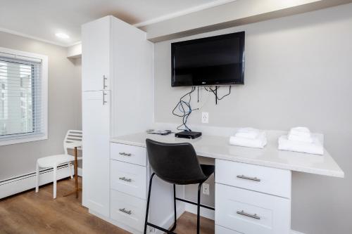 A balcony with an ocean view is available in select rooms at The Atlantic Motel. Every room includes a cable TV.