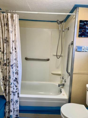 تتوفر (1) غرفة نوم في بيت العطلات هذا، وتلفزيون بشاشة مسطحة، ومنطقة لتناول الطعام، ومطبخ فيه ثلاجة، وغرفة معيشة، وجهاز تكييف.