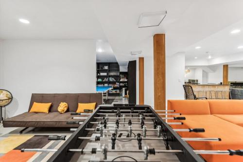 تتوفر (6) غرفة نوم في هذه الشقة، وتلفزيون مع قنوات الكابل، ومطبخ فيه ثلاجة وغسالة صحون، وجهاز تكييف. تتوفر مناشف وبياضات أسرّة في الشقة.