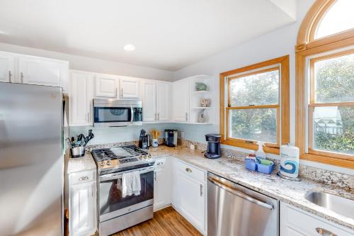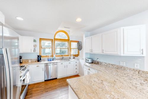 تتوفر (5) غرفة نوم في بيت العطلات، و (3) حمّام، وبياضات أسرّة، ومناشف، وتلفزيون مع قنوات الكابل، ومنطقة لتناول الطعام، ومطبخ مجهز بالكامل، وشرفة مع إطلالات على البحر.