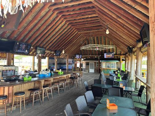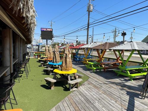 Lazy Pirate Island Sports Grille and Oyster Bar is adjacent to motel and serves salad, seafood, and burgers for lunch and dinner.