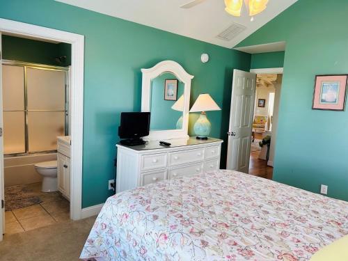 تتوفر (6) غرفة نوم في بيت العطلات، وتلفزيون مع قنوات الكابل، ومطبخ مجهز فيه ثلاجة وغسالة صحون، و (6) حمّام مع دش.