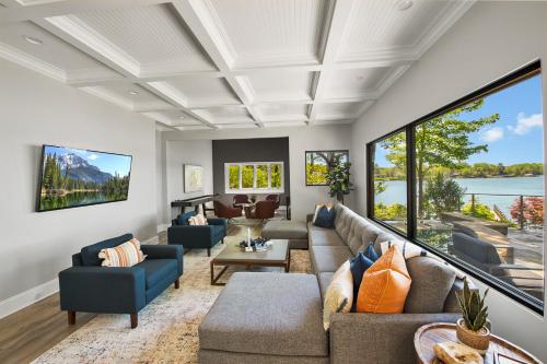 يتوفر تلفزيون في بيت العطلات يحتوي مكان الإقامة هذا المكيف على مطبخ.