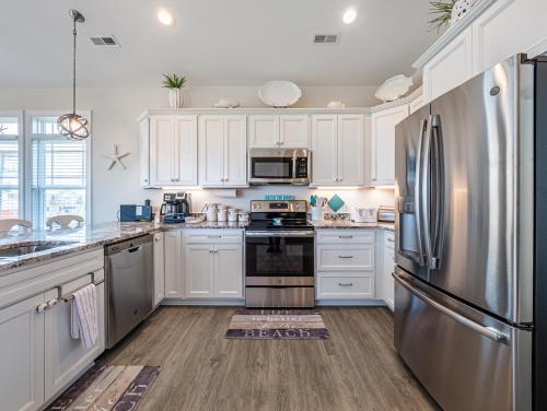 تتوفر (4) غرفة نوم منفصلة في بيت العطلات، و (3) حمّام، ومطبخ مجهز بالكامل فيه ثلاجة وغسالة صحون، وجهاز تكييف. يتوفر تلفزيون مع قنوات الكابل ومشغل دي في دي (DVD).