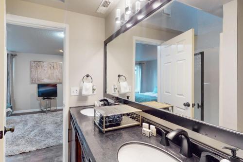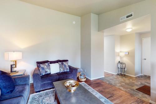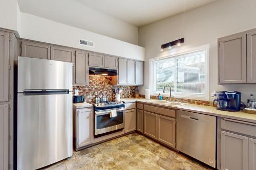 تتوفر (2) غرفة نوم في بيت العطلات هذا، وغرفة معيشة، ومطبخ مجهز بالكامل فيه ثلاجة وماكينة قهوة، و (2) حمّام مع حوض استحمام أو دش ولوازم استحمام مجاناً. تتوفر مناشف وبياضات أسرّة في بيت العطلات.