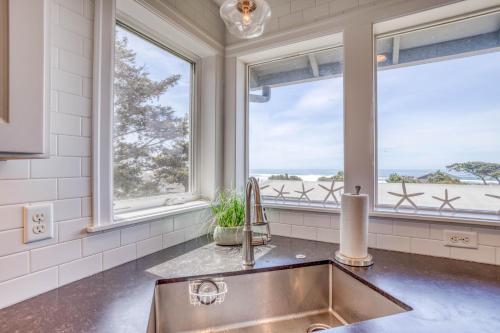 يوفر مكان إقامة "Blue View" إطلالة على البحر وحديقة وتراس وكازينو، ويبعد مسافة 200 م تقريباً عن شاطئ ويكوما (Wecoma Beach). يقع بيت العطلات هذا على بُعد 2.3 كم من Chinook Winds Golf Resort و33 كم من Otter Rock.