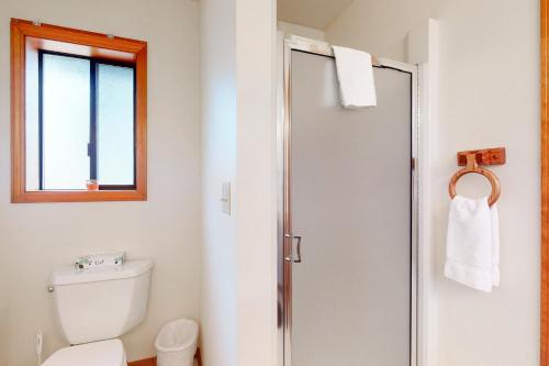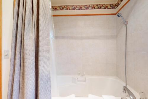 كما يتوفر في بيت العطلات ما يلي: جهاز تكييف وتلفزيون ومطبخ مجهز بالكامل مع ثلاجة ومنطقة جلوس وغسالة ملابس و (2) حمّام مع دش وحوض استحمام ساخن وحوض استحمام.
