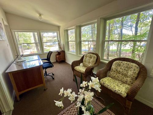 تتوفر (4) غرفة نوم في بيت العطلات، و (2) حمّام، وبياضات أسرّة، ومناشف، وتلفزيون بشاشة مسطحة، ومنطقة لتناول الطعام، ومطبخ مجهز بالكامل، وفناء مع إطلالات على البحيرة.