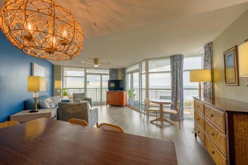 يقدم مكان إقامة "Oceanfront Condo with WaterPark Included in Price" للضيوف شرفة وإطلالات على البحر ومنطقة جلوس وتلفزيون بشاشة مسطحة، بالإضافة إلى مطبخ مجهز بالكامل مع ثلاجة وميكروويف، وحمّام خاص مع دش ومجفف للشعر. يتوفر أيضاً ما يلي: موقد مسطح وغلاية.