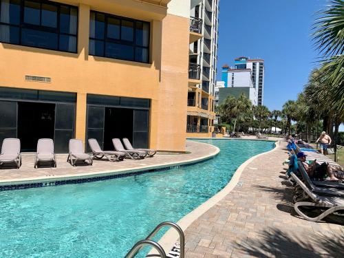 يقع مكان إقامة "210 Sea Gem Oceanfront Pet Friendly Indoor Pools" في ميرتل بيتش، ويوفر مسبحاً خارجياً ومركزاً للياقة البدنية وحديقة، بالإضافة إلى إطلالة على المسبح وواي فاي مجاني. يقع مكان الإقامة هذا مقابل الشاطئ، ويوفر تراس ومطعماً وبار.