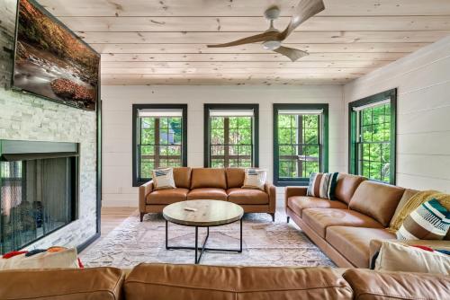 يوفر مكان إقامة "Whispering Pines" إطلالة على الجبل وتراس وشرفة، ويبعد مسافة 8.5 كم تقريباً عن سموكي ماونتن أوبري. يوفر بيت العطلات هذا مسبحاً خاصاً وحديقة ومواقف خاصة للسيارات مجاناً.
