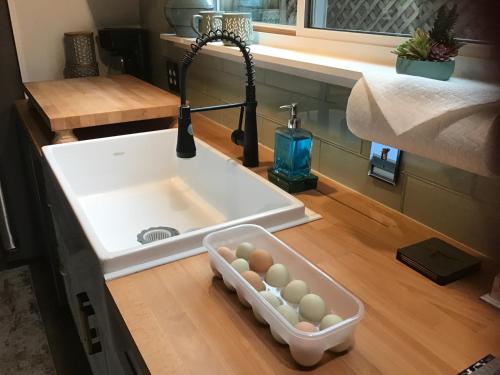 تتوفر (1) غرفة نوم في الإقامة في منزل، وغرفة معيشة، ومطبخ مجهز بالكامل فيه ثلاجة، و (1) حمّام مع دش ولوازم استحمام مجاناً، وجهاز تكييف. تتوفر مناشف وبياضات أسرّة في الإقامة في منزل.