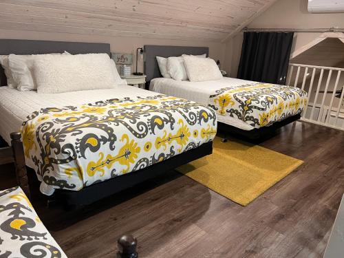 يقدم مكان إقامة "Treetop River Cabins on the Guadalupe River" للضيوف تراس وإطلالات على النهر ومنطقة جلوس وتلفزيون بشاشة مسطحة مع قنوات الكابل، بالإضافة إلى مطبخ مجهز بالكامل مع ثلاجة وغسالة صحون، وحمّام خاص مع دش ولوازم استحمام مجاناً. يتوفر أيضاً ما يلي: فرن وميكروويف وموقد مسطح، بالإضافة إلى ماكينة قهوة.