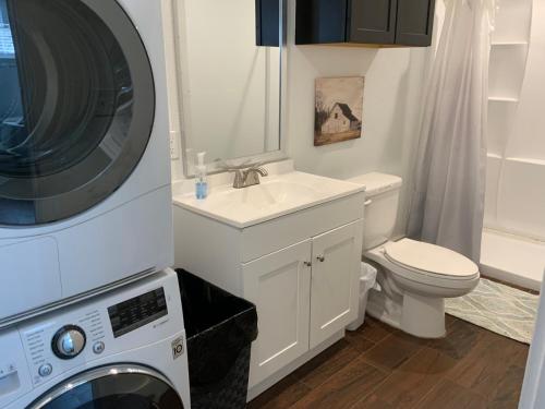 تتوفر (1) غرفة نوم في بيت العطلات، وتلفزيون بشاشة مسطحة، ومطبخ مجهز، وغسالة ملابس، و (1) حمّام مع حوض استحمام أو دش.