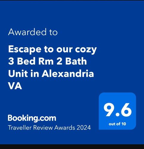 Escape to our cozy 3 Bed Rm 2 Bath Unit in Alexandria VA