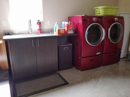 تتوفر (5) غرفة نوم في بيت العطلات، ومطبخ فيه ثلاجة وغسالة صحون، و (3) حمّام مع حوض استحمام ولوازم استحمام مجاناً وغسالة ملابس. يوجد تلفزيون.