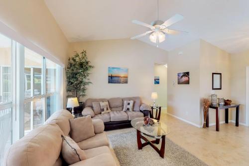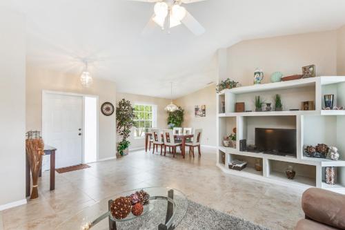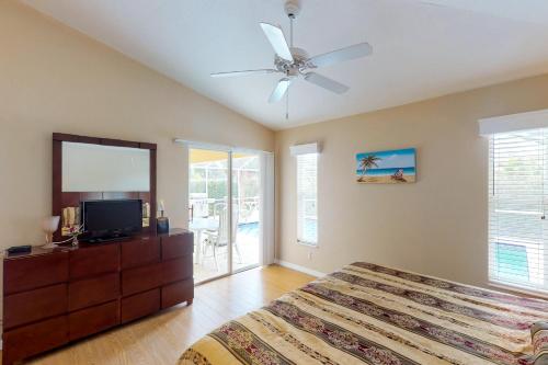 تتوفر (3) غرفة نوم في بيت العطلات، و (2) حمّام، وبياضات أسرّة، ومناشف، وتلفزيون مع قنوات الكابل، ومنطقة لتناول الطعام، ومطبخ مجهز بالكامل، وفناء مع إطلالات على المسبح.