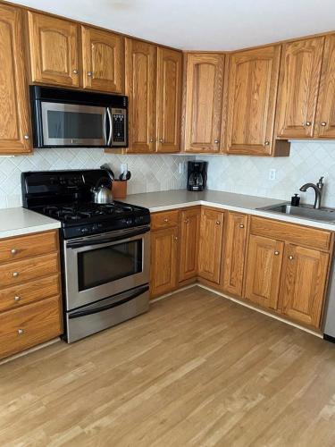 تتوفر (2) غرفة نوم في هذه الشقة، وتلفزيون مع قنوات الكابل، ومطبخ فيه ثلاجة وغسالة صحون، وجهاز تكييف.