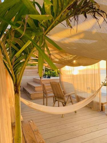 تتوفر (3) غرفة نوم في بيت العطلات، و (1) حمّام، وبياضات أسرّة، ومناشف، وتلفزيون بشاشة مسطحة، ومنطقة لتناول الطعام، ومطبخ مجهز بالكامل، وتراس مع إطلالات على البحر.