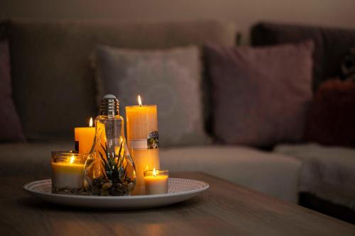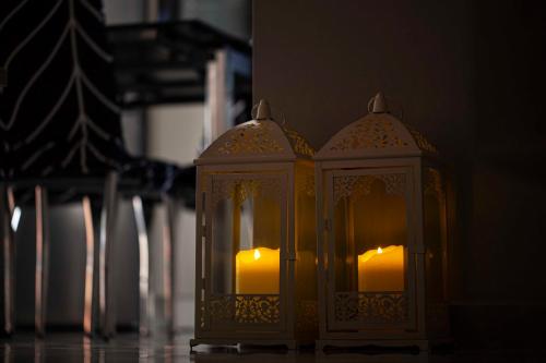 تتوفر (2) غرفة نوم في هذه الشقة، وغرفة معيشة، ومطبخ مجهز بالكامل فيه ثلاجة وغلاية، و (1) حمّام مع دش ولوازم استحمام مجاناً، وجهاز تكييف. تتوفر مناشف وبياضات أسرّة في الشقة.