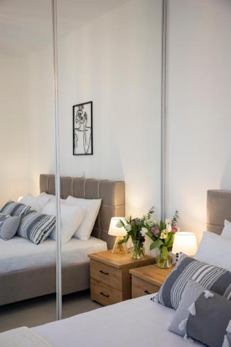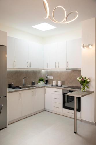 تتوفر (2) غرفة نوم في الشقة، و (1) حمّام، وبياضات أسرّة، ومناشف، وتلفزيون بشاشة مسطحة، ومنطقة لتناول الطعام، ومطبخ مجهز بالكامل، وشرفة مع إطلالات على المدينة.