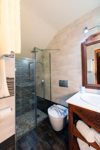 يتوفر حمّام خاص مجهز بالكامل مع دش ومجفف للشعر.
