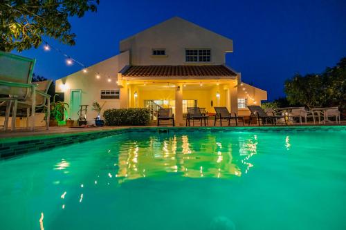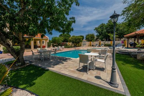 يمكن للضيوف الاستمتاع بالمسبح الداخلي والحديقة في "Sunny Paradise Villa".