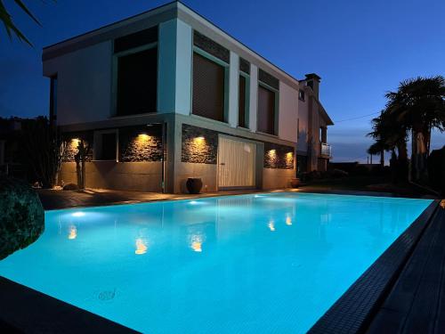 يوفر مكان إقامة "Villa Elvira" إطلالة على البحر وتراس وشرفة، ويبعد مسافة 2.9 كم تقريباً عن شاطئ بلايا دي لا لانزادا (Playa De la Lanzada). توفر هذه الفيلا مسبحاً خاصاً وحديقة ومواقف خاصة للسيارات مجاناً.